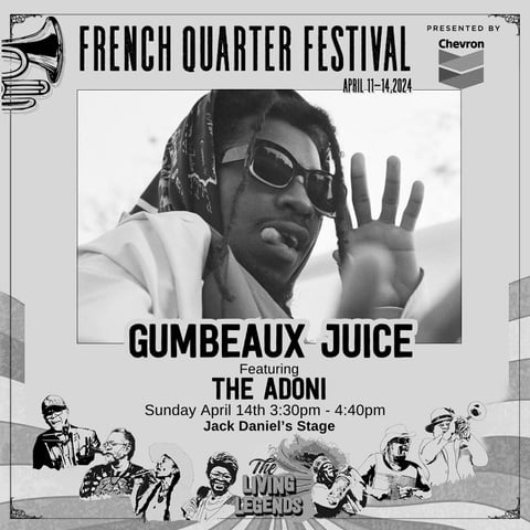 In 2024 Gumbeaux Juice in collaboration with Nine Lifestyle will release its showcase digital platform to include genre-bending collaborations, and new music by some of today’s most exciting living composers. Gumbeaux Juice engages the Gulf Coast Region in dynamic ways to serve and enrich all walks of diverse culture and people. In the Spring of 2021, Gumbeaux Juice launched its onstage ensemble at the Annual French Quarter festival to rave reviews. We made history with the first dedicated Hip-Hop showcase to highlight local up-and-coming talent for the city to preview.